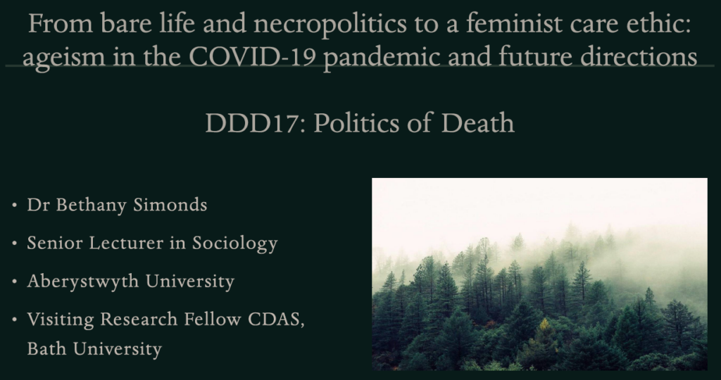 “From bare life and necropolitics to a feminist care ethic: Ageism in the COVID-19 pandemic and future directions” (Bethany Simonds)